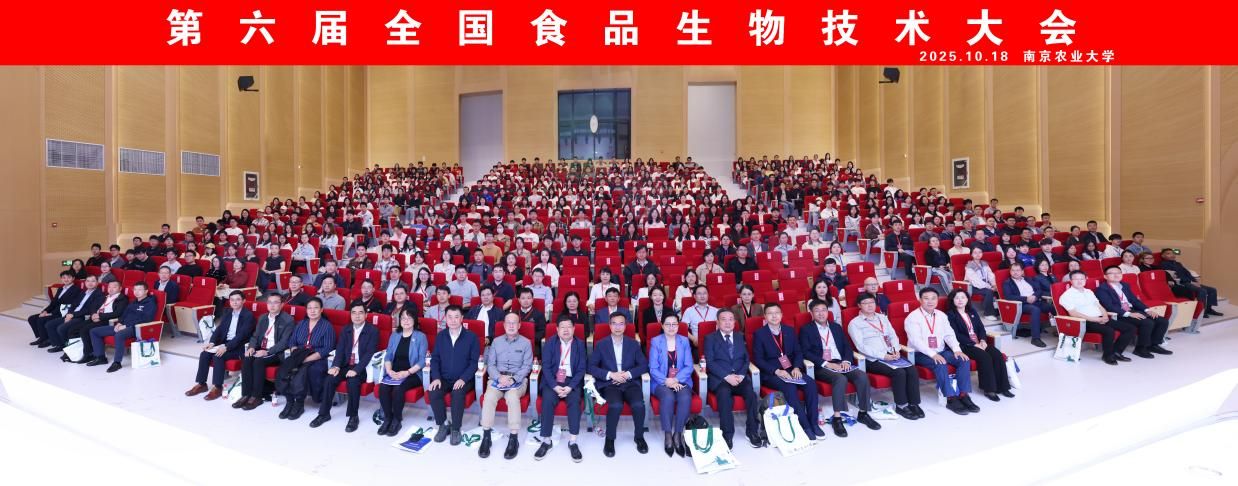 2025年10月17-19日,第六届全国食品生物技术大会在南京农业大学滨江校区隆重召开。本次大会由中国生物工程学会和中国食品科学技术学会共同主办,南京农业大学等十余所高校与科研机构联合承办,来自江南大学、南京大学、南京师范大学、中国科学院微生物所、中国科学院天津工业生物技术研究所、上海交通大学、中国农业大学、华南理工大学等60余家单位的400余位全国食品生物技术领域的知名专家、青年学者、企业代表及研究生共聚一堂,共同探讨人工智能驱动生物技术食品产业高质量融合发展,加快培育食品领域新质生产力。