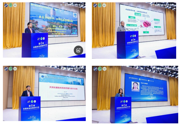 在随后的大会特邀报告环节,陈坚院士以《食品生物技术:科学机遇与战略任务》为题,系统阐述了食品生物技术面临的重大科学问题与国家战略需求;周光宏教授分享了细胞培养肉从“0到1”再到“1到10”的突破性进展;陈义华研究员、宋雁研究员分别就天然抗菌肽挖掘与合成生物技术在新食品原料管理中的应用作了精彩报告。报告内容涵盖基础研究、技术突破与产业应用多个维度,展现了我国食品生物技术领域的前沿动态与创新能力。